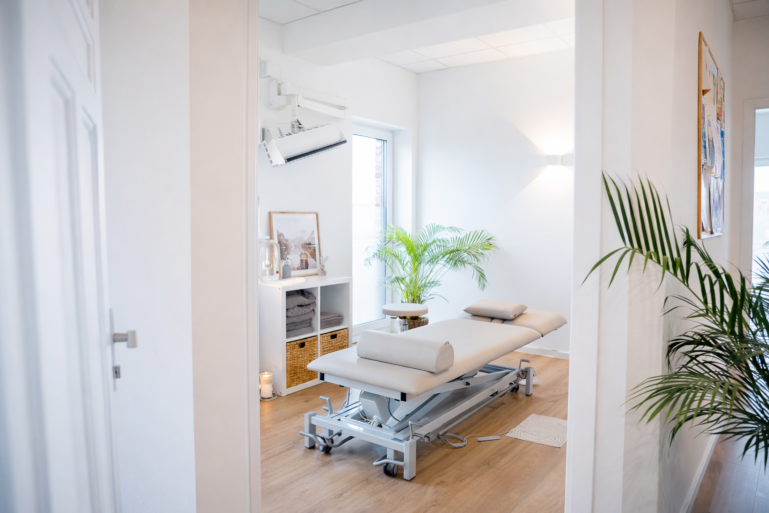 In unseren modern ausgestatteten Behandlungsräumen betreuen wir Sie ganztägig individuell und persönlich. Ergänzt wird unser Angebot durch einen separaten Trainingsraum, der Ihnen zusätzliche Möglichkeiten für aktive Therapie und körperliche Unterstützung bietet.